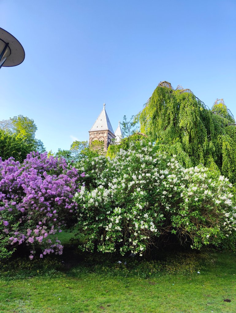 Troligen bör man inte gå upp kl 06, gatorna tomma, lite kyligt men vackert med blommande syrener.